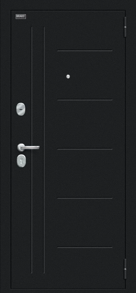 Надежная входная Дверь Браво Проф Букле черное/Bianco Veralinga премиум класса по цене 32 535 руб. Большая толщина стали защитит от проникновения в ваш дом, квартиру или коттедж. Используется очень качественная фурнитура: замки, цилиндры, ручки, защелки. Покрытие и отделка двери изготовлено под внимательным контролем производителя. Дверь имеет долгий срок службы и гарантию.