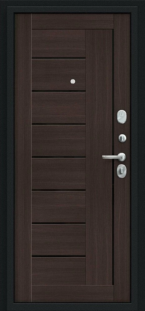 Надежная входная Дверь Браво Проф Букле черное/Wenge Veralinga премиум класса по цене 32 535 руб. Большая толщина стали защитит от проникновения в ваш дом, квартиру или коттедж. Используется очень качественная фурнитура: замки, цилиндры, ручки, защелки. Покрытие и отделка двери изготовлено под внимательным контролем производителя. Дверь имеет долгий срок службы и гарантию.