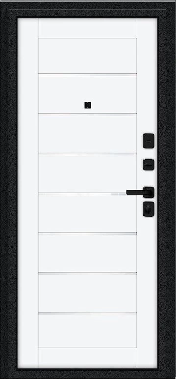 Надежная входная Дверь Браво Техно/SBlack Букле черное/White Silk премиум класса по цене 34 635 руб. Большая толщина стали защитит от проникновения в ваш дом, квартиру или коттедж. Используется очень качественная фурнитура: замки, цилиндры, ручки, защелки. Покрытие и отделка двери изготовлено под внимательным контролем производителя. Дверь имеет долгий срок службы и гарантию.
